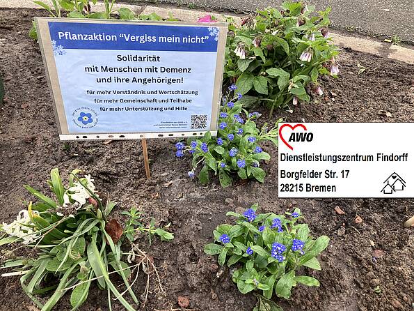 Vergiss-mein-nicht steht als Symbol für Erinnerung, Wertschätzung, Verbundenheit – Werte, die im Umgang mit Menschen mit Demenz von zentraler Bedeutung sind. Mit dieser Aktion wollen wir ein Zeichen der Solidarität setzen und für die Bedürfnisse von Betroffenen und ihren Familien sensibilisieren.