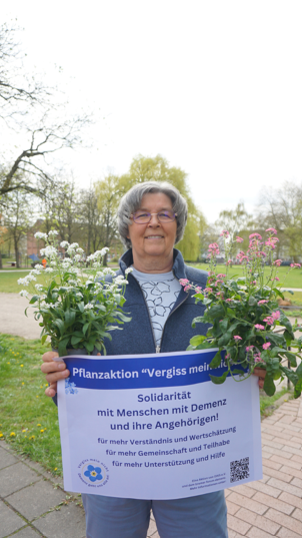 Inhalt: Solidarität mit Menschen mit Demenz und ihre Angehörigen! Pflanzaktion “Vergiss mein nicht” für mehr Verständnis und Wertschätzung für mehr Gemeinschaft und Teilhabe für mehr Unterstützung und Hilfe. Eine Aktion von DIKS e.V. und dem forum demenz