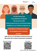 Zielgruppe der Befragung sind Menschen mit Demenz, An- und Zugehörige Personen sowie Menschen mit beruflichem Bezug zu Demenz